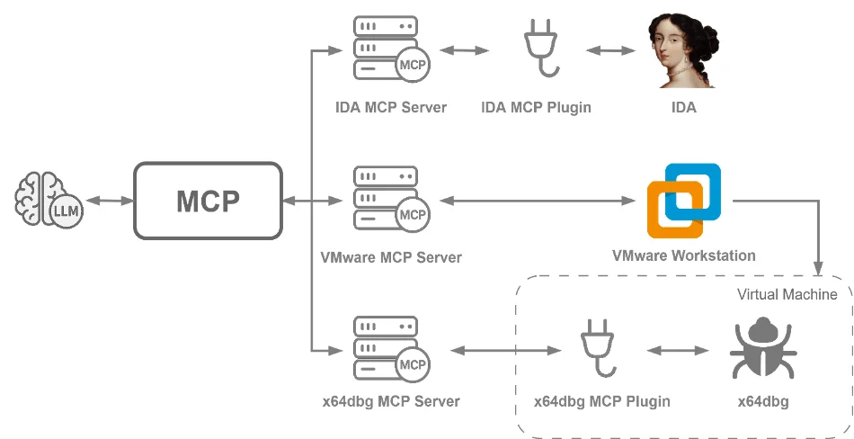 CPRはChatGPT(GPT-5)を用い、クラウドベースの静的解析とランタイム解析を相互補完的に組み合わせるワークフローを導入した。静的解析ではIDA Proからエクスポートした逆アセンブル / デコンパイル関数 / 文字列をAIが解析し、暗号化アルゴリズムの特定やデータ構造の認識、復号用Pythonスクリプトの生成まで行う。ランタイム解析ではMCPを介してライブデバッガーにAIを接続し、暗号鍵、復号後バッファ、メモリ上のC2データなど実行時の値を抽出する。これにより、数日規模の手作業だった工程が数時間で再現可能な半自動プロセスへと変わった。