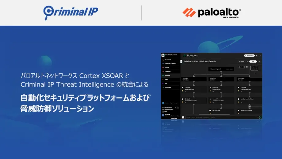 AI SPERAのCriminal IP、パロアルトCortex XSOARと連携しセキュリティ運用を自動化