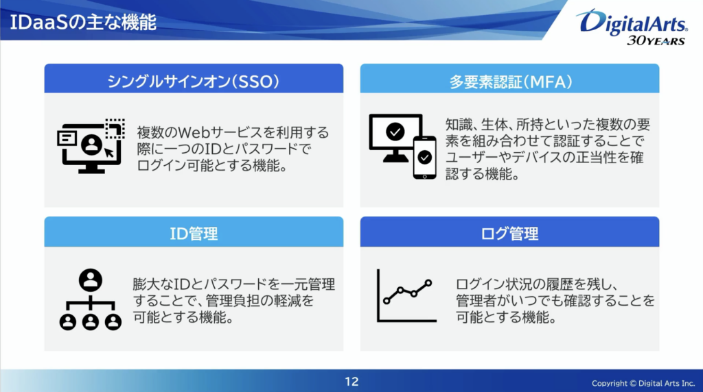 IDaaSが担う代表機能として、次の4点が整理された。